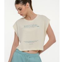 Γυναικείο κοντομάνικο crop top με τύπωμα μπροστά και στρογγυλή λαιμόκοψη. Κανονική εφαρμογή.