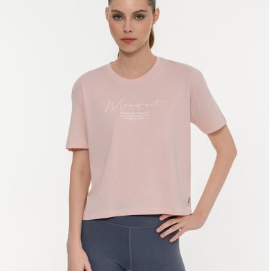 Γυναικείο κοντομάνικο crop top με τύπωμα manifest μπροστά και στρογγυλή λαιμόκοψη. Κανονική εφαρμογή.