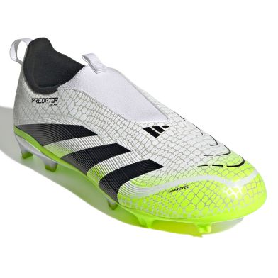 Τα ποδοσφαιρικά παπούτσια adidas Predator είναι σχεδιασμένα για σκοραρίσματα ακριβείας. Το επάνω μέρος Hybridfeel χωρίς κορδόνια διαθέτει 3D υφή και αντιολισθητικές Strikescale λεπτομέρειες στο μεσαίο τμήμα, που προσφέρουν ακριβή ελέγχους κατά τη διάρκεια των σουτ.